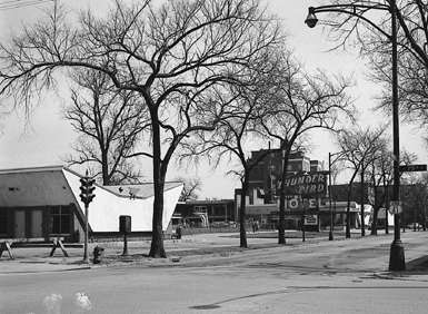 Another architectural icon along South Shore Drive in the 50s and 60s was the Thunderbird Motel. The motel, along with its pool, is long gone. A parking lot now sits on the site. |